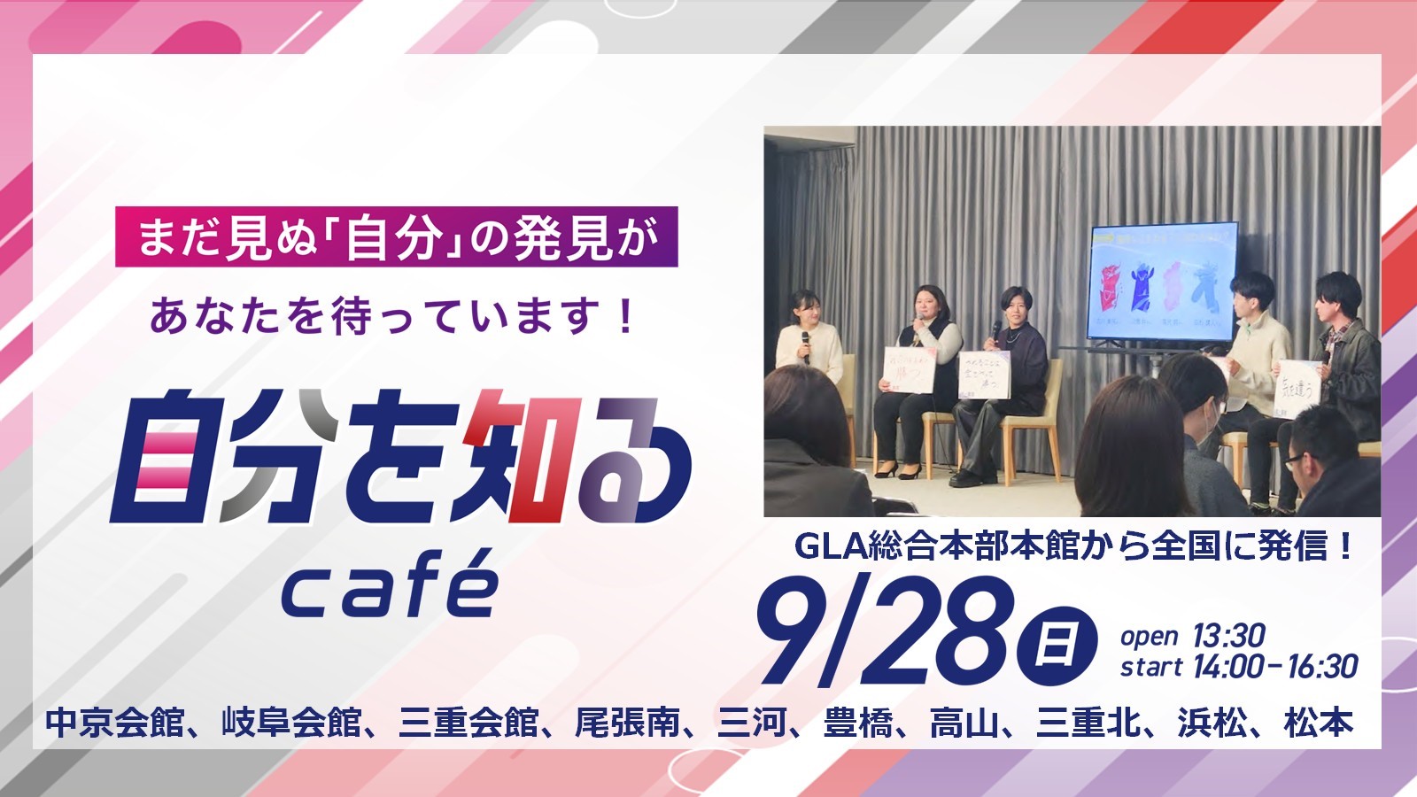 9月28日(日)14時から中京会館2階講堂にて「自分を知るカフェ」が開催されます!